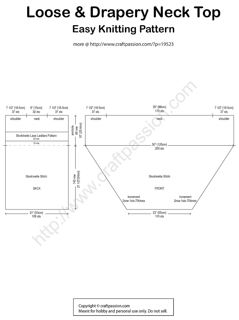 Or, click here to download a printable pdf document for the dimension of the Back and Front knit pieces.